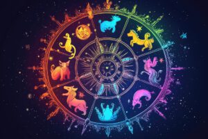 Whimsical Cartoon Zodiac Wheel with Playful Characters – Fun Representation of Astrological Signs